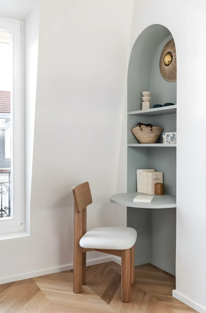 Un bon espace de travail ne nécessite pas forcément une pièce fermée. Il suffit parfois de repérer ces zones inexploitées qui attendent d’être révélées. Une alcôve, un recoin sous un escalier, une partie de couloir un peu large, un renfoncement dans le salon…