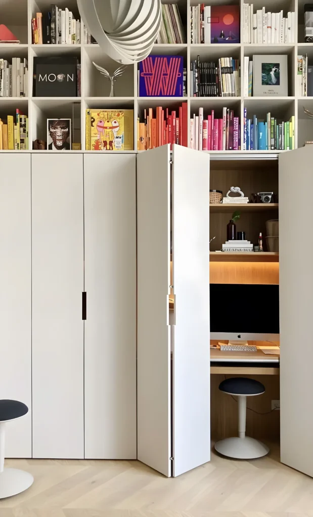 Dans un intérieur sans pièce bureau, le mobilier doit être intelligent. Il se fait discret, modulable, presque caméléon. Le bureau peut être escamotable, intégré à une étagère, pliable, ou se refermer comme un écrin une fois la journée finie.
